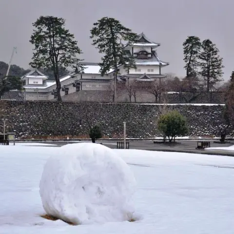 様々な石垣がありますが、石垣の石一つ一つに雪が積もると、
