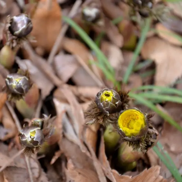 《金沢城公園からも一枚》 兼六園に便乗させてもらいます。福寿草です。