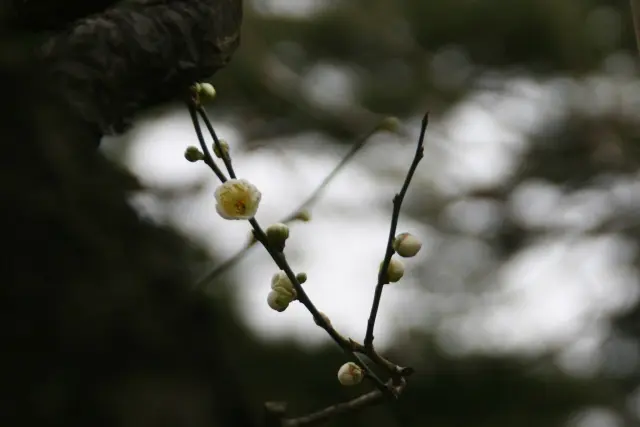 また、昨日までは白梅は冬至梅だけしか咲いていませんでしたが、 青軸と白加賀も咲き始めました。 写真は青軸です。