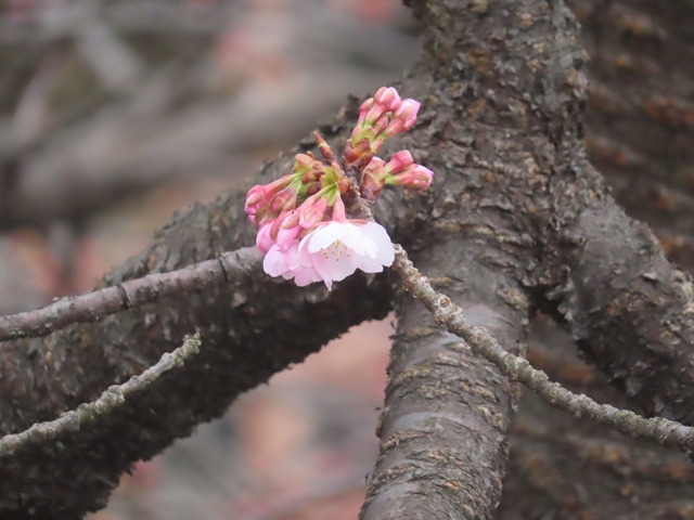 兼六園で一番に咲く桜、ツバキカンザクラが開花しました。 植物は春に向けて着々と準備しているようです。 ツバキカンザクラは石垣中段にありますので、鑑賞の際はご注意ください。
