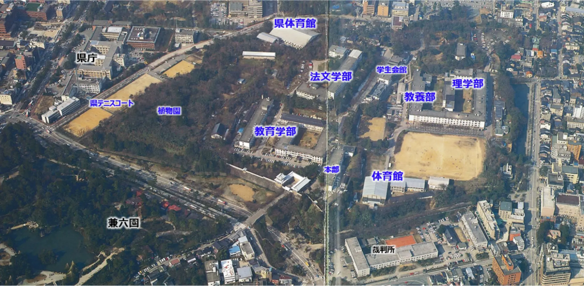 戦後の昭和24年(1949)には金沢大学が開学し、大学本部、教養部、理学部など工学部と医学部を除く学部が置かれ、全国的にも珍しい城の中の大学として親しまれました。