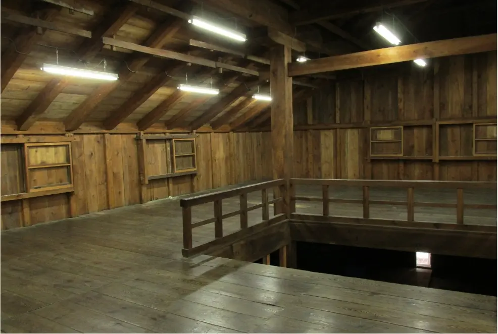 内部は総二階建てで桁行約22m、梁間約15m、建築面積333㎡(延床面積636㎡)は城郭内の土蔵としては全国的に最大級の規模です。